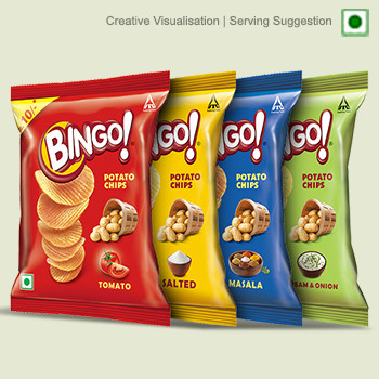 Bingo! Potato Chips are made from handpicked golden quality potatoes which are boiled and sliced thinly to give the crispy and crunchy chips lighter than air. These epitome of potato perfections are then sprinkled with secret flavours