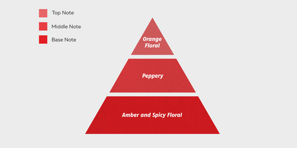 An intense blend of peppery note with citrusy delight, this scent infuses an undeniable appeal of an amber-spicy floral base.