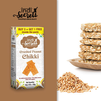 Chikkis have been consumed through generations and their recipes have been handed down from one generation to the other. They have remained a favourite snack bar for everyone. Reviving the classic old-style peanuts chikki, IndiSecrets by Bigbasket has handcrafted this extremely delicious chikki made with premium jaggery and ghee. It is a great source of energy and protein and ideal for a sweet snack.