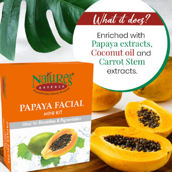 Nature's Essence brings to you a Papaya Facial Kit that contains the goodness of Papaya extracts, coconut oil, carrot stem extracts and more. The facial kit has 4 pigmentation and blemish removal steps that helps make the skin healthy and glowing. This Kit can be used by anyone regardless of their skin type.