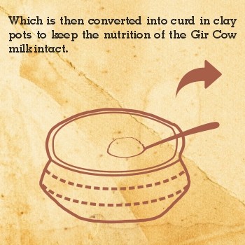 - Which is then converted into curd in clay pots to keep the nutrition of the Gir Cow milk infact.