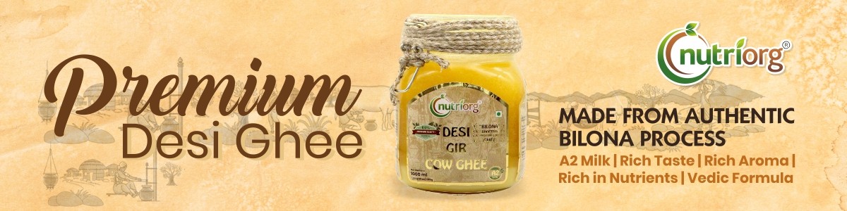 Nutriorg Cow ghee is made from Desi Gir Cows which are allowed to graze freely in the open fields of Dwarka Gaushala, Gujarat. We don’t believe in keeping our cows bounded by ropes, they are left to graze freely with first milking preference. Our cows are ‘Healthy & Content Cows’ as they are not bound in cells unlike commercial diaries. When our cows are fit and well fed, they eat in plenty and hence they give more nutrient rich A2 milk.
