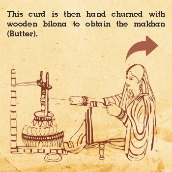 - This curd is then hand churned with wooden bilona to obtain the makhan( Butter)