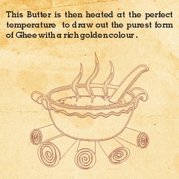 - This butter is then heated at the perfect temperature to draw out the purest form of Ghee with a rich golden color.