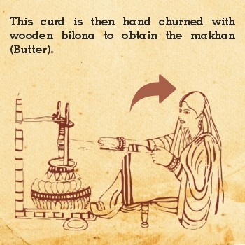 - This curd is then hand churned with wooden bilona to obtain the makhan ( butter)