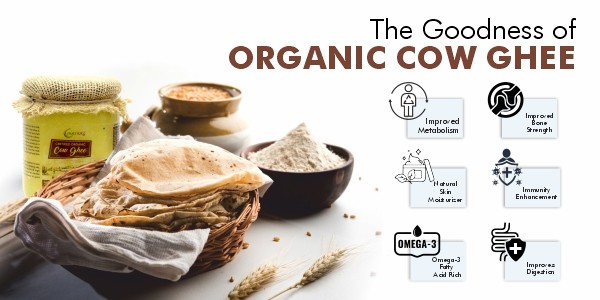 - Organic grass-fed ghee is extremely skin-friendly. Regular use in moderation helps in maintaining skin health.