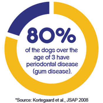 80% of the dogs over the age of 3 have periodontal disease (gum disease).
