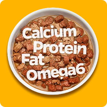 Whole Chicken Frame | Chicken Liver | Chicken Meat | Carrot | Pumpkin | Wheat Gluten| Gravy | Fibre | Minerals & Vitamins |Soybean Oil | Flavouring Agents | Colouring Agents And Preservatives