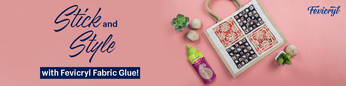 • Fevicryl Fabric Glue is best used for sticking embellishments onto the fabric or fabric to fabric and in various techniques in which materials are stuck to the fabric, stuck on fabric, or independent of fabric and is non-toxic.