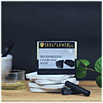 100% pure, natural, vegan and cold-pressed Soulflower Deodorizing Charcoal Soap is a handmade, hand-cut, natural oil-based soap. It is made from Activated Charcoal Powder, Fresh Radish Juice, essential oils of Peppermint and Tea tree, oils of Olive, Coconut, Castor and Palm with Vitamin E.