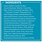 Water, Sodium Laureth Sulfate, Aqua, Cocoamidopropylbetaine, Sodium Cocoamphoacetate, Alkylpolyglucoside, Peg-& Glyceryl Cocoate, Cocomonoethanolamide, Silicone Quaternium -20, Ppg 33 Butylether, Polysilicon -17, Gur Hydroxypropyltriammonium Chloride, Poly Quaternium 10, Methylchloroisothiazolinone, Benzyl Alcohol, Disodium Edta, Poly Quatemium 7, Sodium Chloride, Isohexadecane, D-panthenol, Orthophosphoric Acid, Extracts Of Aloe Vera, Lemon & Amla, Sulphobenzotriazolederivative, Bht, Nymphaea Alba Oil, Fragrance, Ci 60730.